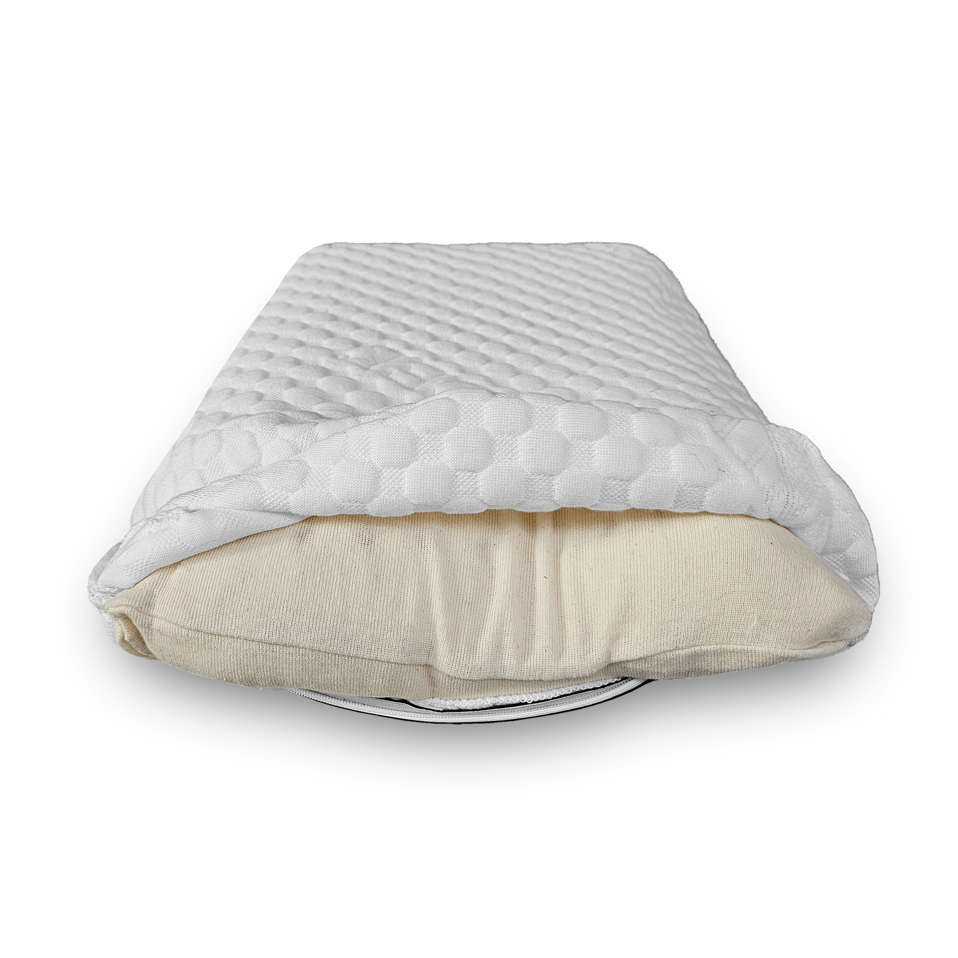 A baby pillow made of 100% natural latex provides safe, healthy, and comfortable sleep for your child. The organic cotton inner cover ensures breathability and additional protection, while the Tencel outer cover adds softness and practicality, as it can be easily removed and machine-washed. A perfect choice of natural materials that together create a hygienic and gentle environment for your little one’s peaceful sleep.